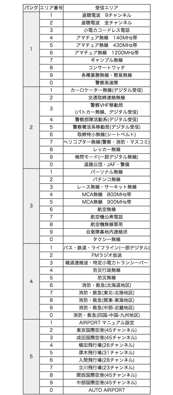 ●デジタル無線の種別、速度取締機の接近を音声ガイドにてお知らせします!! ●地震、津波、台風の正確な災害情報を、いち早く受信できる同報系防災行政無線受信! ■多彩で実用的なメモリーバンク ■防災・行政・消防・救急・警察無線専用エリア搭載 ■音声ガイド機能搭載 ■ドライブモード搭載 ・2波同時受信 ・聞きたい受信エリアを簡単受信 ・多彩で実用的なメモリーバンク ・音声ガイド機能搭載 ・検問モード ・盗聴電波専用エリア搭載 ・全国の防災、行政、消防、救急無線エリア搭載 ・GPSチューナー内蔵 ・ドライブモード搭載 ・USB端子を装備 ・録音、再生機能 |