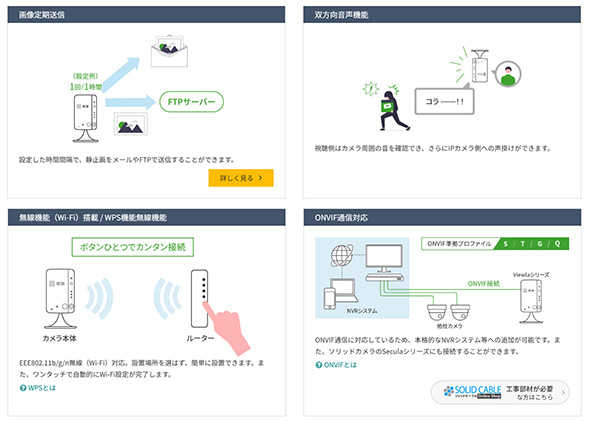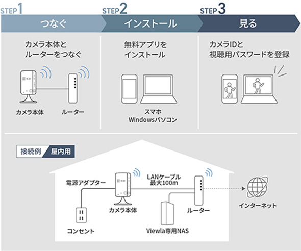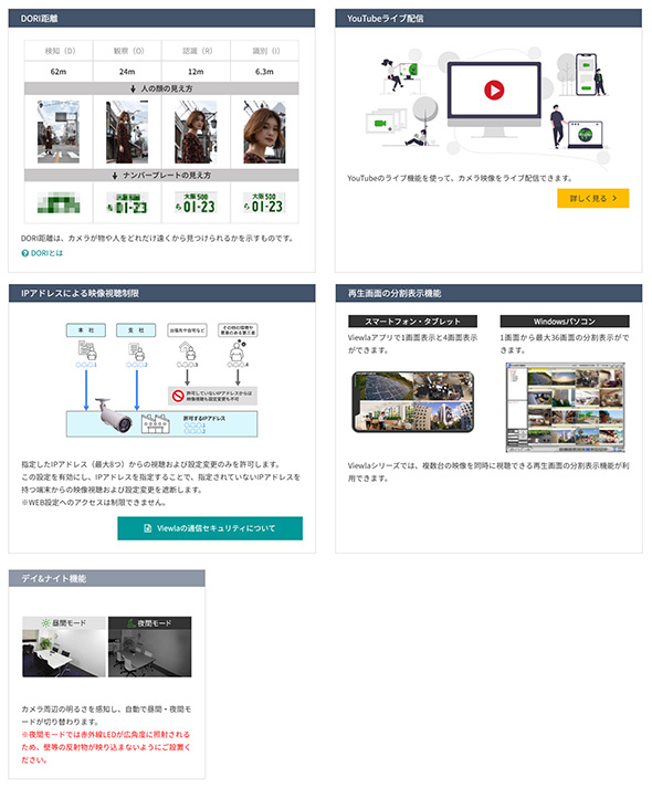 周囲にとけこむ外観で、気になる場所を見逃すことなくしっかりキャッチする固定式モデル。 赤外線レンズ搭載で暗闇にも強く、24時間見守り可能です。 ![]() ![]() ![]() ●ビューラはPlug&Playで かんたん接続・設定 接続から視聴まで3ステップ! 数分もあれば誰でも接続できます。 接続に必要なのは、 インターネット環境とカメラID・パスワードのみ。 ![]() ![]() ![]() ![]() ![]() |