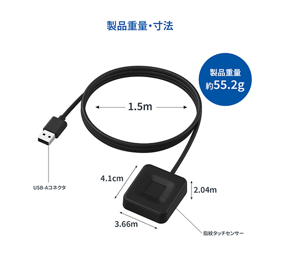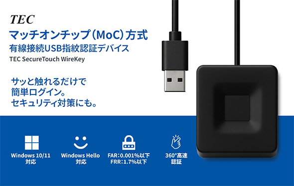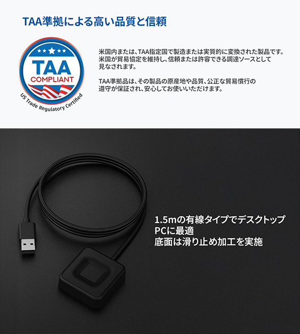 | 製品名 | 有線接続1.5m マッチオンチップ方式 デスクトップ向けUSB指紋認証デバイス TE-FPA-CA1 |