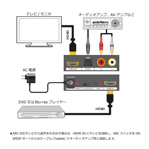 | ◎HDMI に含まれているデジタルオーディオ信号を分離します。