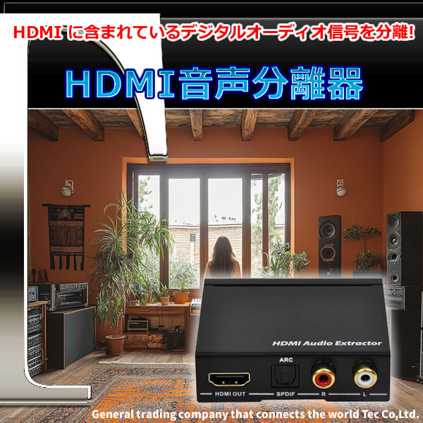 HDMI に含まれているデジタルオーディオ信号を分離できる製品「HDMI音声分離器 THDTOA-4K」です。HDMI入力をそのまま出力するHDMI出力機能付きで4K2Kの入力に対応し、HDMIの映像はスルーなのでそのままモニターに出力することが可能。出力は2chと5.1chに対応しており、EDIDを切り替えることが可能です。ARCに対応しているので、ARC対応機器同士であればHDMIケーブル1本繋ぐだけで双方のデジタル音声を楽しむことが出来ます。また、7.1chリニアPCM192kHz及びビットストリームにも対応しています。出力にHDMIしかないブルーレイコーダーやプレーヤーをオーディオにつなげて使用したい場合や、スピーカー非搭載モニターを使用する際に外部スピーカーを使用する場合などにおすすめです。アナログ音声にこだわりを持っている方にもオススメの商品でございます。
