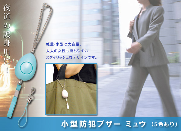 軽量、手のひらサイズの小型ですが大音量ですので防犯用として大人の女性にも非常に人気の高い商品です。5色のカラーバリエーションでアクセサリー感覚で携帯できます。ストラップパーツ付で携帯電話にも取付できます。(別途金具等必要な場合あり)