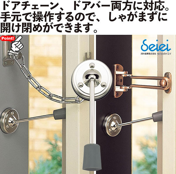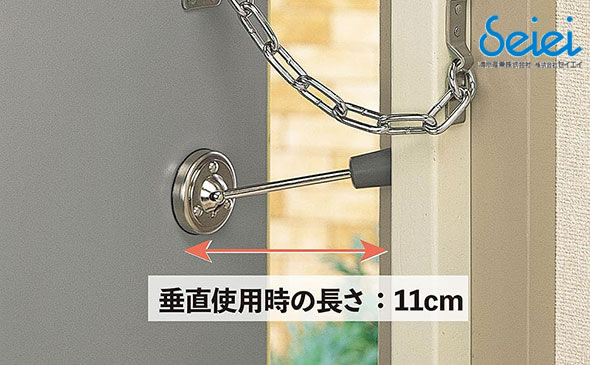 ●防犯しながら換気。 ![]() ●ドアチェーン、ドアバー両方に対応 玄関の換気をしたい時にドアチェーン、ドアバーをかけたままドアを開けられます。 足元ではなく手元で操作するので、しゃがまずに開け閉めができます。 ●磁石だから跡が残らない。 強力磁石でドアのどの場所にも付けられます。 (磁石がつくスチールドアのみ使えます) 角度もお好みに変えられます。 垂直使用時の長さは約11cm。 ![]() ●バーを倒してそのまま収納 バーを倒せば収納完了。 使わない時もドアに付けたままにできるので収納場所も困りません。 ![]() |