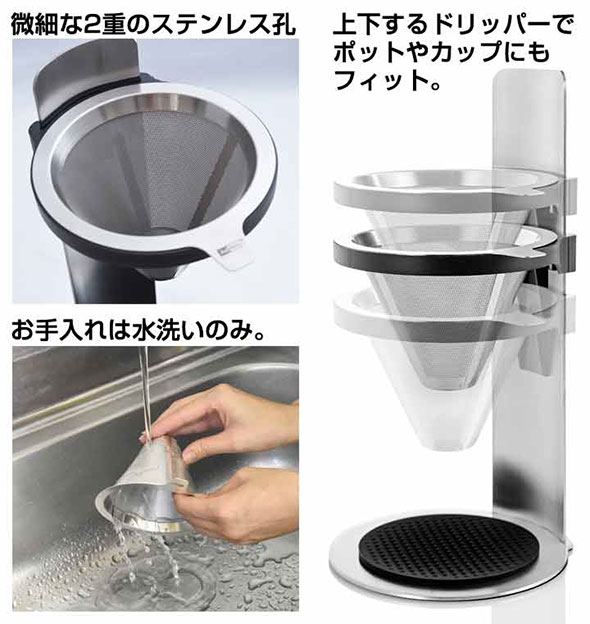 フィルター不要の微細な二重のステンレス穴のステンレスメッシュフィルターでコーヒーの香りを最大に引き出します。