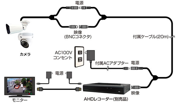 4ch 4K出力対応AHDハイブリッドレコーダー 2TB HR-504AHDカメラ専用延長ケーブル AL-AHD20M |