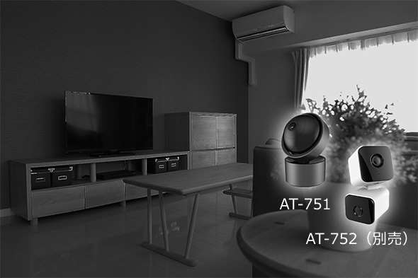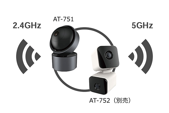 | ■双方向通話対応 Wi-Fiカメラ屋内用 ダブルカメラ/首振り/2.4GHz・5GHz AT-752(別売) |