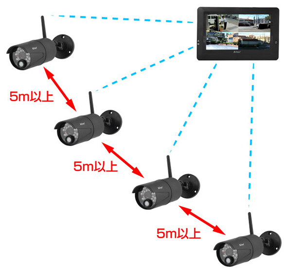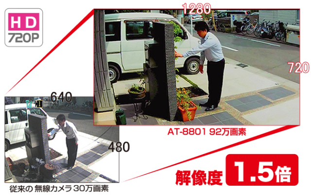 -電波受信可能か確認したい場合- AT-8801はご自宅や建物内でご利用の場合、「コードレス電話」「無線LAN」等の無線機器と概ね同じ程度の受信状況となりますので事前の確認目安としてご参考ください。 詳細については当社までお問い合わせください。 ※ビル・マンション・学校等の施設、窓の少ない建物、地下室等の建築物の場合、電波が飛ばない恐れがあります。 ※本製品に記載の電波到達距離は、当社が行った見通し環境でのテスト結果に基づいた動作確認距離となっております。実際に製品を使用した場合と結果が異なる場合があります。 無線カメラは壁面と天井に取付可能。 防水+音声+夜間撮影の強力トリプルタッグ |