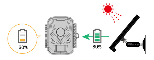 ソーラパネルと乾電池の併用が可能なため、乾電池の消費を抑えることが出来ます。また、乾電池の容量がなくなった場合でも、BS-01に充電があればそのまま電力が供給されます。※残電圧の高い方が優先されます。