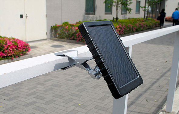 太陽光で発電して内蔵のバッテリーに蓄電。AT-1へ電源を供給します。※乾電池には充電できません。