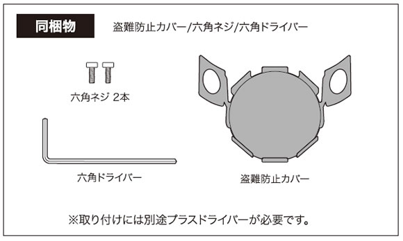 盗難防止カバー、六角ドライバー1本、六角ネジ2本