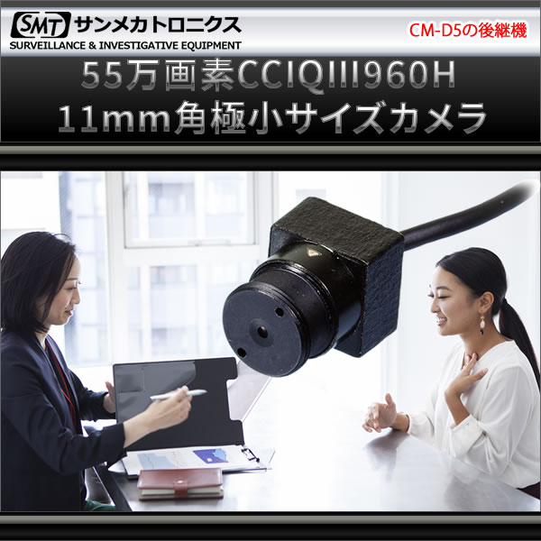 ◎CM-D5XはCM-D5の後継機です。新たに55万画素のCCIQⅢ撮像素子を搭載した極小サイズカラーカメラです。サイズだけでなく、水平解像度710TV本を提供、最低被写体照度は0.05Luxを有するなどスペックも充実しています。また、フォーカス調整が可能となっており、近接撮影にも対応しています。映像出力にRCAを採用、既存のシステムへのインストールも簡単です。