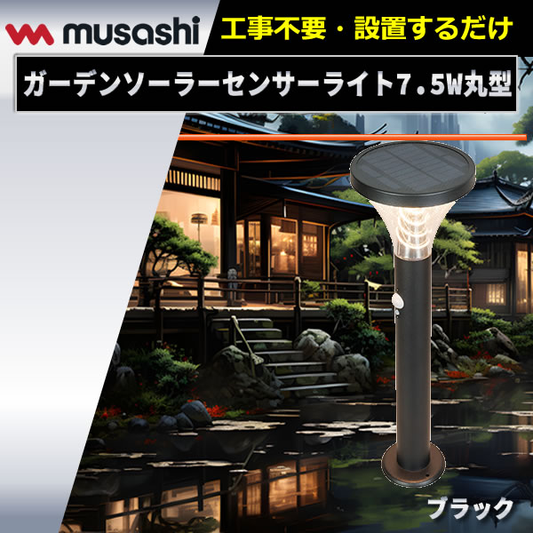 • ガーデンソーラーセンサーライト7.5W丸型 ブラック GL-S130BK