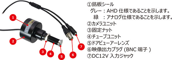 ※仕様及びデザインは予告無く変更する場合があります。 ※1 カラードアカムHD で使用するドアビューアーレンズは、擬装性能を保持する為実際のドアビューアーを採用しています。製造時に発生する微細なキズ等についてはご容赦下さいます様お願い申しあげます。 ※2 カラードアカムHD の映像は、ドアビューアーレンズを通して取り込んだ映像となります。その為、映像取り込み円内でピントの合わないエリアがありますが不良ではございません。センタ―エリアにピントが合うように調整しています(レンズより0.8 ~ 1m の距離にて)。 ※3 カラードアカムHD はAHD 規格を採用していますが、同規格を採用するすべてのレコーダーでの動作を保証する物ではございません。予めご了承下さいます様お願い致します。 ※4 極端に暗い場所での使用には適しておりません。暗所で使用した場合、動体を撮影した際に映像に残像が発生する事がありますが異常ではありません。 ※5 本製品の保証期間はお買い上げ日より6ヶ月となります。 ※6 ご使用の際は、付属の取扱説明書をよくお読みになり、十分理解された上でご使用ください。 |