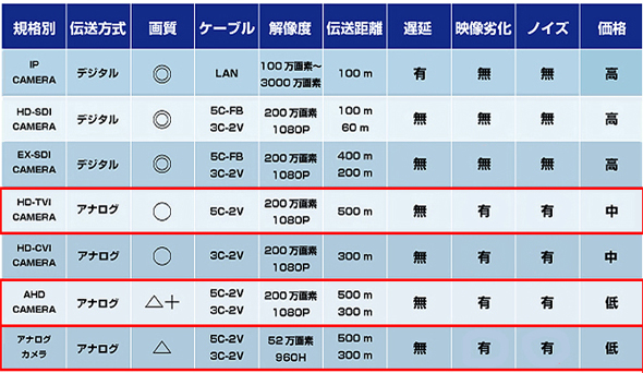 HD-TVI、AHD、CVBSに対応