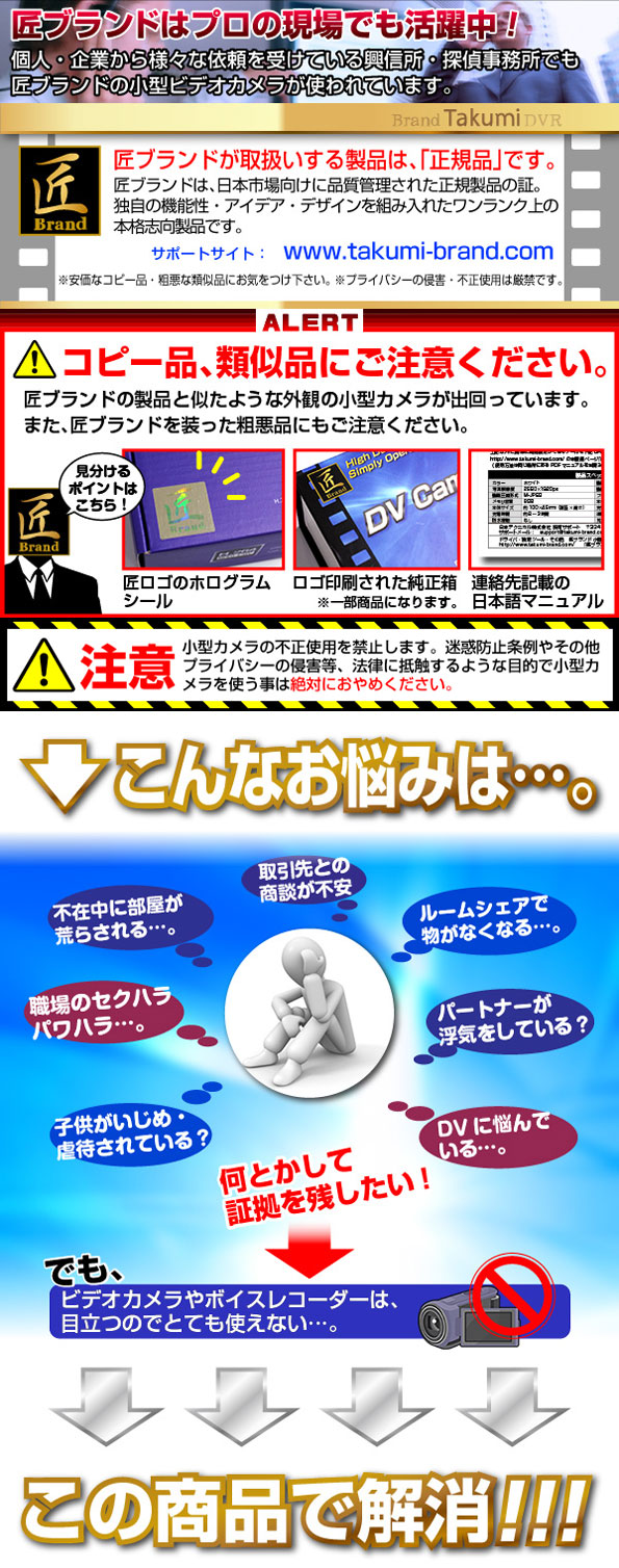 ※本製品は防犯目的にのみご使用ください。使用にあたり、一切の不正・迷惑行為を禁じます。 |