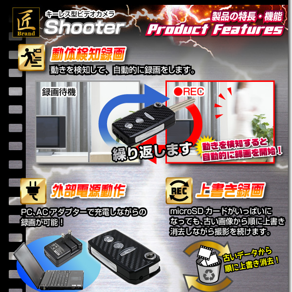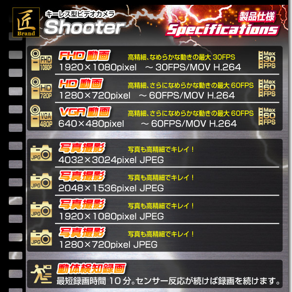 ・動体検知録画(最長40分まで撮影可能)