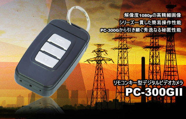 PC-300Gの後継機種! ポリスカムシリーズロングランモデルのリモコンキー型デジタルビデオカメラPC-300G。 PC-300Gから録画解像度をFullHD1080pへとスペックアップしたPC-300G?を発売いたしました。 シリーズの要である高い秘匿性能やシンプルかつ高信頼な操作性能に加え、FullHD1080pに対応させた高画質仕様のモデルとなります。 高画質仕様へと生まれ変わったPC-300G?、撮影者のタスク遂行をより強力にサポートできるでしょう。