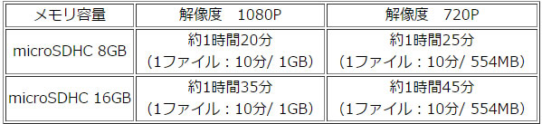 | ■記録媒体 | MicroSDHCカード(最大16GB) |
