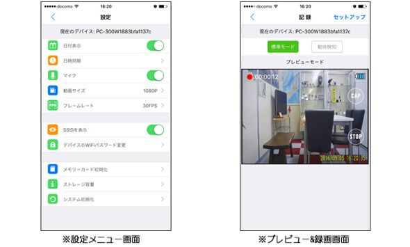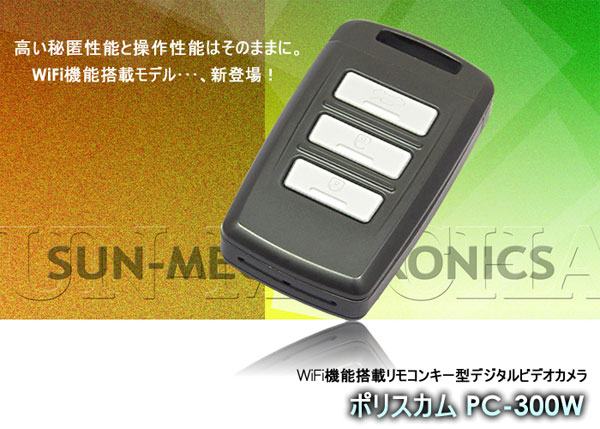 ![]() ポリスカムPC-300Wは、WiFi機能を新たに搭載した第6世代リモコンキー型 デジタルビデオカメラです。スマホやタブレットでWiFi接続が可能、専用アプリで 映像のモニターや録画のON/OFFができます。500万画素デジタルCMOSイメージ センサーを搭載し、高精細で色鮮やかに描画します。 ![]() ■WiFi機能搭載 スマホやタブレットにてWiFi接続が可能です。映像のモニタリングはもちろんのこと、解像度やフレームレートなどの設定ができます。また、PC-300Wの記録映像データをスマホにダウンロードできます。 ■高画質仕様1080p を支える500万画素デジタルCMOSイメージセンサー 500万画素デジタルCMOSイメージセンサーを採用し、FullHD1080pの高精細映像で証拠を記録します。最新第6世代キーレスリモコン型DVRとして画質面でも深化しています。 ■シンプルで確実な操作性能 3ボタンのシンプルな操作性と俊敏な反応は、ミスの許されない捜査・調査現場でのハードワークに確実に応えます。 ■高い秘匿性能 シリーズ共通の完璧な外観デザインは健在で、非常に高い秘匿性能をもたらします。 ■高音質マイク 小型の高性能コンデンサー型マイクを採用。PCMデジタル音声にて高音質記録されます。 ■その他 日付を映像にインサートできるタイムスタンプ機能、本機の作動状態をお知らせするバイブレーション機能の提供。 日時設定方法はこちらから。 ■設定メニュー画面とプレビュー画面