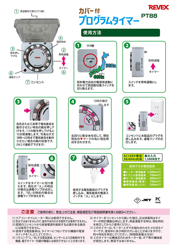 15分単位で何回でも、毎日自動的に電気器具の電源を「入・切」します(入り切り最大94動作)