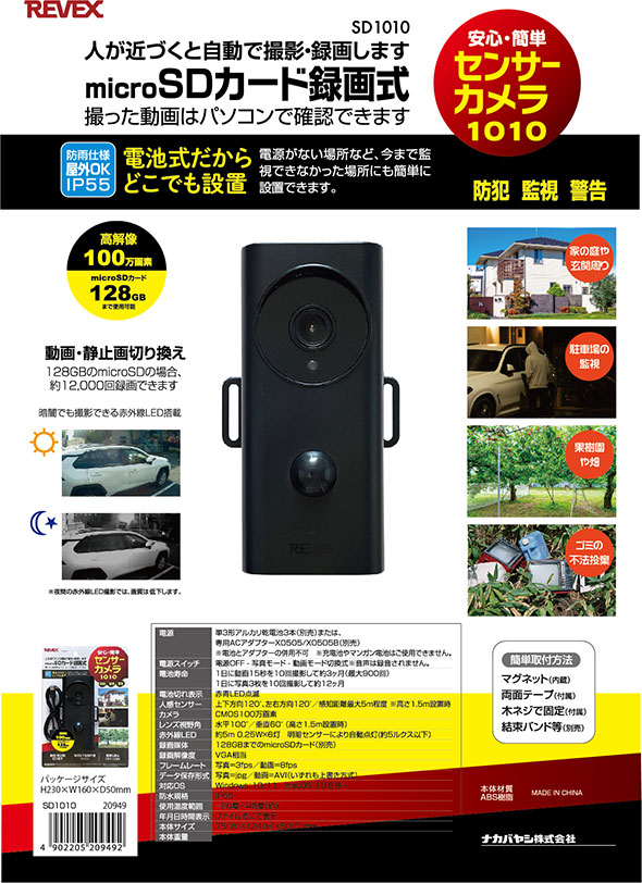 動画(15秒)を1日10回録画して約3カ月(夜間撮影が多い場合は赤外線LED点灯のため短くなります) |