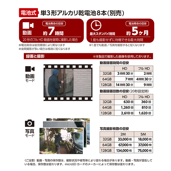 最大待機約5ヶ月(1度も撮影せずに待機できる最大時間) |