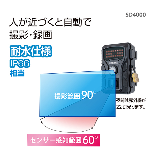 ※侵入者が感知範囲に入ってから人感センサーが反応するまでの時間は環境によって異なります |