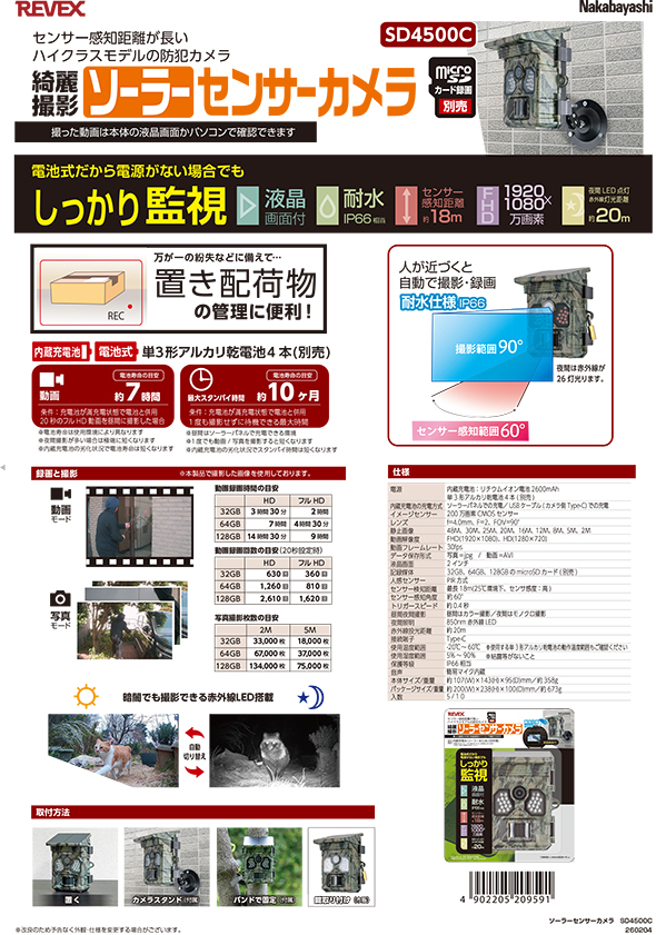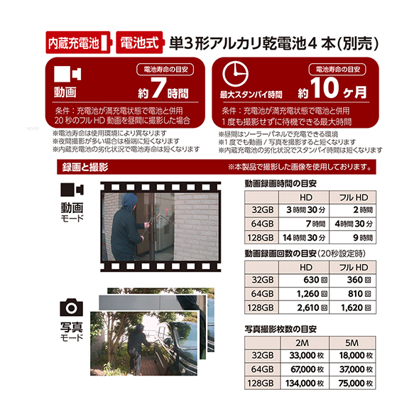 最大待機約5ヶ月(1度も撮影せずに待機できる最大時間) |