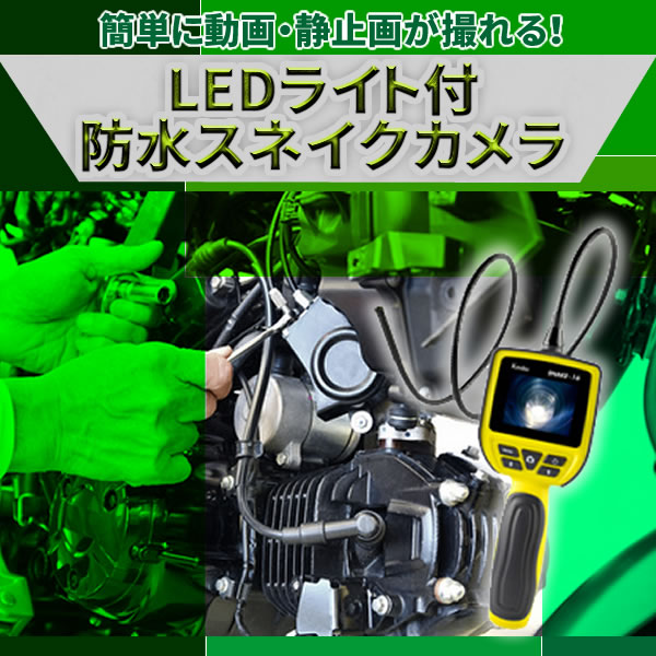 ![]() ■自在に曲げられるフレキシブルチューブ 先端にLEDライトとレンズが付いたフレキシブルチューブで、手の届かない狭いところでも高いところでも、簡単に静止画、動画を撮影できます。 ※5段階調光機能付LEDライト ■見やすい2.5型液晶モニター 従来品より大きい2.5型液晶モニター搭載で見やすくなりました。 ■防塵・防水仕様 防塵・防水仕様なので、水回りの修理や機械整備、家庭の清掃などに便利です。 ※カメラ本体は防水仕様ではございません。 ■VGA画質にて動画・静止画を記録 録画サイズは動画・静止画ともにVGA(640X480)で記録します。 また、動画の際はフレーム数を20/25/30fpsから選択する事ができます。 ■microSDHCメモリカード対応 microSDカードスロット搭載で、32GBまで対応しております。 ■軽量設計 本体重量わず311g(付属品・電池等含まず)で手軽に使え、機械整備や 水周りの修理、家庭の清掃等、多用途にご活用頂けます。 |