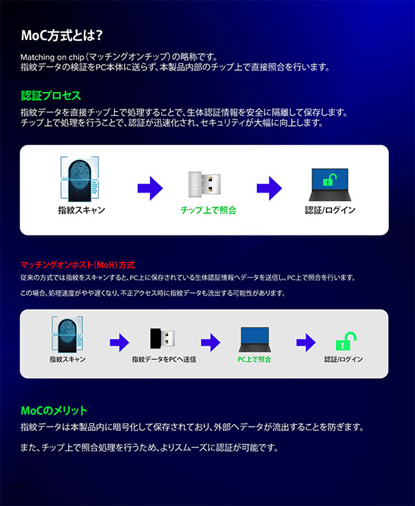 ![]() ![]() ![]() ![]() ![]() ![]() ![]() 【特長】 Windows10 / 11 Hello、Windows Hello For Businessに対応した、外付けUSB指紋認証アダプターです。 MoC方式で製品本体に指紋情報を安全に保存することで、指紋データの漏洩を防ぎ、不正ログインの防止が可能です。生体認証パスキーを用いたクラウドサービスのログインにも対応しています。 業務用のPCや個人でご利用のPCでセキュリティの向上にご利用いただけます。 ※本製品に登録した指紋を削除する際は、指紋を登録したPCでのみ削除が可能となります。 ![]() ![]() ![]() ![]() ![]() ![]() ![]() |