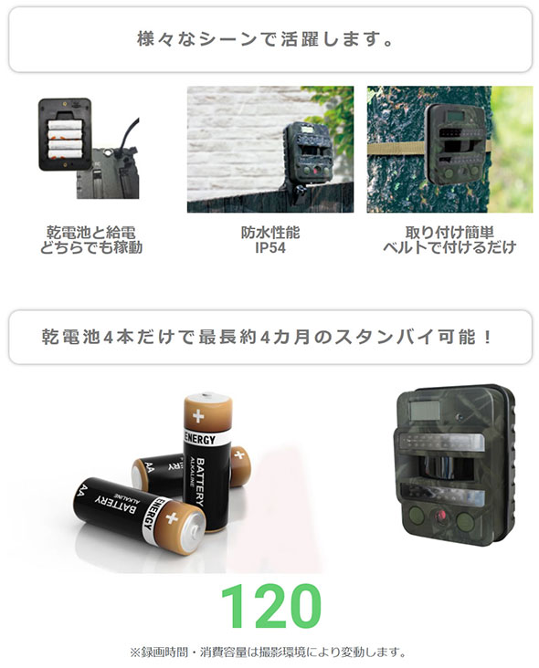 PIRセンサーによる自動撮影(動画/写真)※動画は音声対応 |