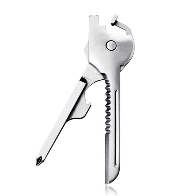 鍵とほぼ同じ形と大きさのコンパクトなマルチツールです。ステンレス製なので錆びることもなく、また180゜に開き一直線になります。 キーホルダーに家の鍵などと一緒につけていつでももって歩いてもまったく邪魔になりません。コンパクトで機能的でいざという時に重宝します。 カギにしか見えない秀逸なデザインなので違和感なく持ち歩きもできます。 ![]() ![]()