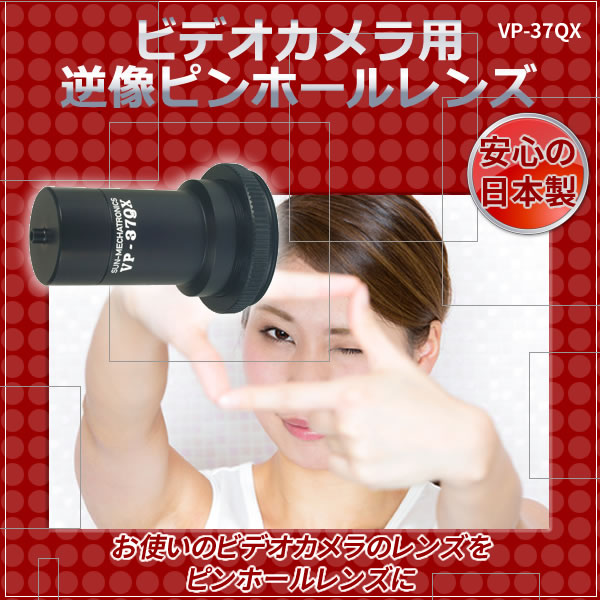 ピンホールレンズに![]() ![]() 長らく不在が続いた逆像ピンホ-ルレンズに、新型モデル「VP-37QX」が登場しました。今までのスタイルと異なり、ビデオカメラ接続ネジユニットをそっくり交換することで37mm, 30.5mm, 30mm, 27mmのフィルタ-径に対応します。 画角56度。 サンメカトロニクス(Sun-Mechatronics)のVP-37シリ-ズは、37mmのフィルタ-径を持つビデオカメラに取り付けられるよう作られています。 フィルタ-径が他のサイズの場合は別売りの変換リングを使用する必要があります。 現在、25・27・28・30・30.5・43・46.・49・52・55・58mmに対応できる変換リングを用意しております<*>。 ご購入になられる際にお手持ちのビデオカメラのフィルタ-径をご確認ください。 <*>フィルタ-径によっては、変換リングが2枚必要になる場合が御座います。例えば: お手持ちのビデオカメラのフィルタ-径が43mmの場合は、43-46mmと46-37mmの二枚のリングが必要です。 |