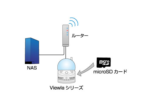 | ●Viewlaシリーズで簡易録画 Viewlaシリーズで2~3週間程度の簡易録画ができます。 もちろんNASとの併用録画も可能なので、NASでは常時録画、SDカードでは検知録画と使い分けも可能! ![]() |