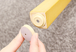 木製椅子に取り付けてカーペットやクッションフロア等のすべりにくい床での椅子移動補助に。 清掃時の椅子の移動や、力の弱いお子様や女性、高齢者の方の椅子移動補助に。 ![]() ![]() ●外れにくく、椅子脚にしっかり固定 木製の椅子脚に直接木ねじで取り付けるので、外れにくくしっかり固定できます。 ![]() ●椅子脚の形状を選ばず取り付け可能 木製の椅子脚であれば、丸脚・角脚・三角脚のいずれかにも取り付けできます。 ![]() ●軽い力でイスが動く 底面はスベリ効果の高い素材になっているので、カーペットやクッションフロア等のすべりにくい床面でも軽い力でイスの移動ができます。 ![]() ●手軽で便利なカートリッジ方式 椅子脚に取り付けるベース材と底面のスベリ部はねじ込み式のカートリッジ方式になっているのでスベリ効果が落ちてきた場合、スベリ部(別売り)のみ交換して使用できます。 ![]() ●床暖房にも使用可能 床暖房の最高表面温度は下地等の施工条件により異なりますが、室温20℃で35℃前後まで上がります。 本体材質は色移行しにくいTPE樹脂(エラストマー樹脂)製、底部のフッ素樹脂は熱による圧着成型なので、床暖房でも安心して使用できます。 ※接着剤、粘着剤は一切使用していません。 ![]() ●椅子脚サイズの計測方法 椅子脚が角脚・三角脚の場合は辺の一辺を、丸脚の場合は直径を測りサイズに合った製品をお選びください。 ※既に椅子脚キャップが付いている場合は、取り外して本製品をご使用いただくことをお勧めします。